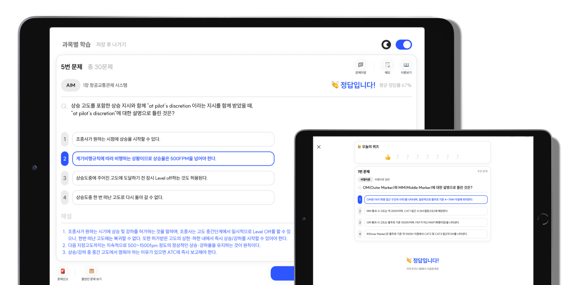 문제만 KoK! 핵심만 Pick! 조종사 온라인 학습 플랫폼, 콕픽.